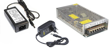 – Блок питания. Преобразовывает сетевое напряжение – переменное 220В, в напряжение питания светодиодной ленты – постоянное 12В.