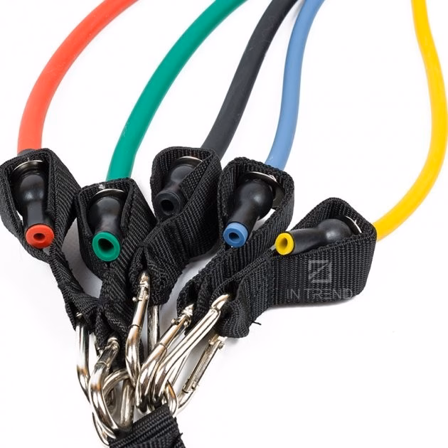 ✨ Набір еспандерів з петлями power resistance bands 5 джгутів є унікальним, тому що кожен джгут має свою жорсткість та навантаження. даний тренажер використовується у різноманітних видах спорту і є багатофункціональним, розвиває витривалість, тренує багато груп м’язів, покращує фізичні показники тощо. ергономічні ручки комфортно лягають в руки, не вислизають завдяки спеціальному покриттю, а їхня форма забезпечує якісний хват. мобільність даного снаряда дає можливість займатися не тільки в домашніх умовах, а й на свіжому повітрі. рівні опору еспандерів: жовтий – 4,5 кг. зелений – 6,75 кг. червоний – 9 кг. синій – 11,25 кг. чорний – 13,5 кг. правила догляду за трубчастими еспандерами: не мочіть еспандери водою, протирайте злегка вологою ганчіркою у міру забруднення. ручки та ремені можна протирати вологою ганчірочкою з милом. машинне прання протипоказане. не розтягуйте еспандер більш ніж у два з половиною рази. більший розтяг не означає сильніший опір. не використовуйте еспандери на шорстких, металевих та погано оброблених поверхнях. латекс має властивість рватися через пошкодження поверхні. зарядіть енергію за допомогою тренувань з опором! п’ять кольорових трубчастих еспандерів із латексу професійної якості для тренажерного залу можна використовувати окремо або скласти у будь-якій комбінації, максимально еквівалентно 45 кг. широке застосування: універсальний домашній тренажер; укомплектований п’ятьма джгутами різної жорсткості; використовується для роботи різних груп м’язів; застосовується у реабілітаційних програмах; ефективно спалює калорії; покращує фізичний стан; ергономічні ручки трикутної форми забезпечують якісний хват; антиковзне покриття ручок; дверний якір; укомплектований чохлом для зберігання. включає: 5 еспандерів (по 110 см): чорний = 13 кг; зелений = 11 кг; синій = 9 кг; червоний = 7 кг; жовтий = 5 кг 2 ручки з піни 2 бретельки 1 дверний анкер 1 сумка