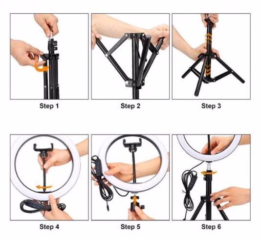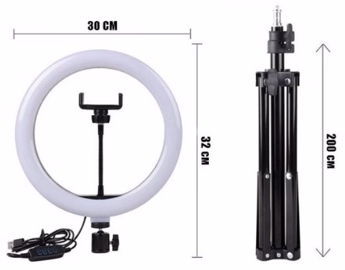 ✨ Кільцева світлодіодна поворотна лампа з тримачем під мобільний телефон 30 см у діаметрі має 3 режими свічення з регулюванням яскравості, які перемикаються на пульті керування: холодний білий, теплий жовтий та нейтральний денний. лампа працює від usb, що дозволяє запитати її як від пк, ноубтука, розетки, так і від повербанка або прикурювача автомобіля, взявши її із собою. лампу можна нахиляти під будь-яким кутом. лампа ідеально підходить для фото та відео зйомки, її часто використовують фотографи, блогери, стилісти, візажисти, перукарі, тату майстри, косметологи та інші майстри beauty індустрії. з її допомогою ви зможете робити більш якісний та привабливий контент, рівномірне освітлення не створюватиме тіні та фотографії будуть максимально соковитими та яскравими, що допоможе вам залучати більше клієнтів демонструючи свої роботи. однією з відмінних характеристик цієї лампи є наявність утримувача під мобільний телефон, що дозволить вам заощадити на покупці іншого штатива з кріпленням і забезпечить правильний розподіл світла на об’єкті зйомки щодо об’єктива камери. у комплект до лампи йде компактний та легкий студійний штатив для накамерних та студійних спалахів із софтбоксами та іншого освітлювального обладнання загальною вагою до 2,5 кг. висота штатива регулюється від 0,85 м до 2,10 м. конструкція штатива складається з трьох секцій, які фіксуються фіксаторами-кліпсами із пластику. Відмінна риса даної моделі – це мала вага (950гр) і компактний розміри – 72см у складеному стані. штатив має зносостійке покриття, стійке до подряпин та відбитків пальців. характеристики: діаметр кільця: 30 см потужність: 24 вт кількість режимів: 3 (теплий, природний, холодний) яскравість лампи: 20-1000 lm колірна температура холодного світла: 5500k колірна температура теплого світла: 3000к напруга: 5v харчування: від usb довжина кабелю: 2 м штатив йде в наборі