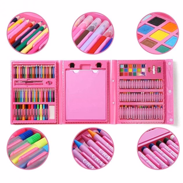 Набір для малювання дитячий “Валіза творчості 208 предметів” Рожевий – Новинка