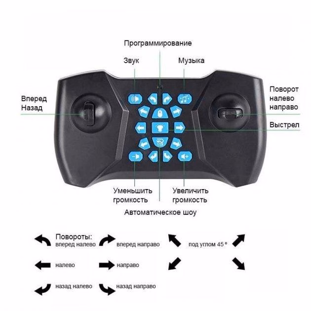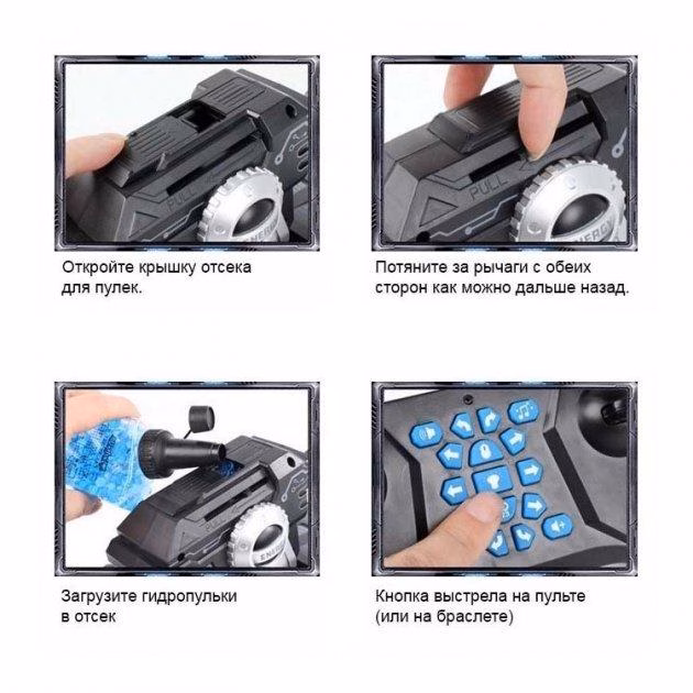 Танк стріляючий Mech Chariot 360 ° з керуванням жестами RQ2084 – Новинка. Топ продажів. У разі виникнення запитань просимо Вас дзвонити по телефону на сайті. Стріляючий танк перевертня Mech Chariot 360 °, з подвійним дистанційним керуванням. Даною машинкою можна керувати жестами за допомогою спеціального браслета або класичним пультом керування. На пульті керування та на браслеті є спеціальні кнопки для пострілу. Гідропульки складаються на 99% води і на 1% нетоксичного полімеру, який утримує молекули води в щільній оболонці. Кульки безпечні, при потраплянні не шкодять людині і тваринам і не бруднять поверхні. У наборі з танком йде великий набір гідрокульок. Перед застосуванням їх треба замочити у воді, полімер вбере потрібну кількість, кульки будуть придатні для стрільби. вправо.ᅠ Іграшка придатна для гри не тільки в приміщенні, а й на вулиці. Танк може переміщатися по нерівній поверхні, гравію, піску, землі, траві. У комплекті є традиційний багатофункціональний, кнопковий Пульт управління, що працює від 2 пальчикових батарейок ААА. На пульті є можливість керування звуком, зміною його гучності. Водяні бомби (кульки) для набоїв легко засипаються у відсік-магазин зі спеціального тубуса. Функція Програмування: Натискаючи кнопку Програмування, ви можете задавати рух та стрілянину за своїм бажанням! Машинка-танк все запам’ятає. Увімкніть та дивіться захоплюючий «ЕКШЕН» у режимі Повторити! Режим Демонстрація: Включаючи режим Демонстрація, Машинка-танк показує всі свої функції, переваги, та стрільби рух! Характеристики бойового танка: – Характеристики: 26,5 * 18,5 * 17 см – Масштаб: 1:14 – Час роботи: близько 40 хвилин – Акумулятор: 1300 mAh 3,7 V – Час зарядки: 2 години (зарядка через USB) – Відстань дистанційного керування дистанційного керування: 2AA (не входить в комплект) Можливості: Їздить вперед, назад, повертає ліворуч, праворуч, ліворуч під кутом 45 градусів, праворуч під кутом 45 градусів, обертається на 360°, дрейфує, має підсвічування, танцювальну музику, звукові ефекти. Модель містить три мелодії, які дитина може вибрати для своєї гри. Машина-танк має звук сигналу, звук двигуна і звук стрільби з гармати, при включеному стані. Комплектація: Танк (включає акумулятор), пульт керування, usb кабель для зарядки, гідропульки 2 упаковки по 500 шт., Браслет на руку для керування жестами.